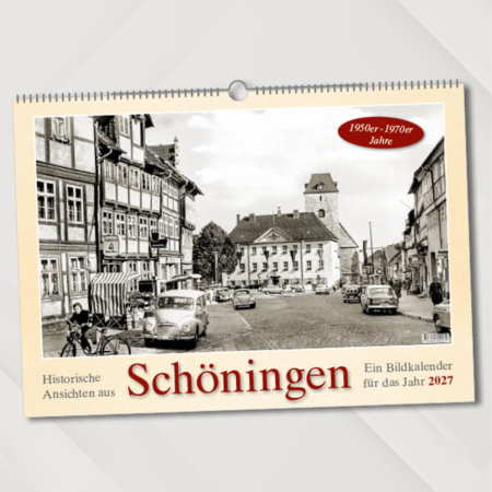 Der historische Kalender von Schöningen für 2027 sind den 1950er-1970er Jahren gewidmet. An diese ganz besondere Zeit des Aufbruchs können sich viele noch gut erinnern. Fotos und Postkarten zeigen das Leben in der Stadt, die Geschäfte und Restaurants und einiges mehr. Der sehenswerte Kalender ist im DIN A3 Format erhältlich.