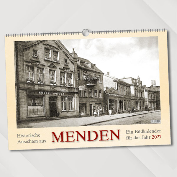 Der Wandkalender mit historischen Ansichten von Menden für 2027 gibt Einblicke in Straßen und Plätze, Ereignisse und Freizeit. Der rundum gelungene Kalender entführt einen in die Geschichte der Stadt Menden. Im DIN A3 Format ist dieser Kalender erhältlich.