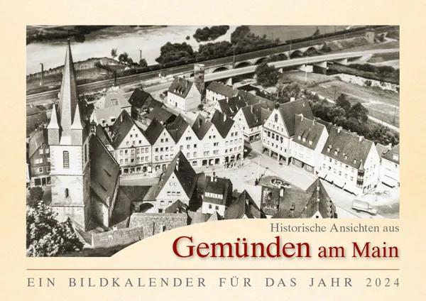 Das romantische Städtchen Gemünden an Main in historischen Bildern eingefangen und in einem wunderschönen A3 Bildkalender für das Jahr 2024 präsentiert.