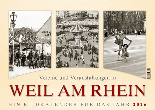 Erneut ist ein Wandkalender mit historischen Ansichten aus Weil am Rhein erschienen. 12 Motive rund um Weil am Rhein begleiten durch das Jahr 2026. Erstellt wurde der DIN A 3 Kalender aus alten Fotografien. Die Motive zeigen eindrucksvoll die alten Ansichten der Stadt. Mit dem Kalender soll ein Stück Stadtgeschichte ins heimische Wohnzimmer geholt werden dass zum Erzählen und Erinnern einlädt.